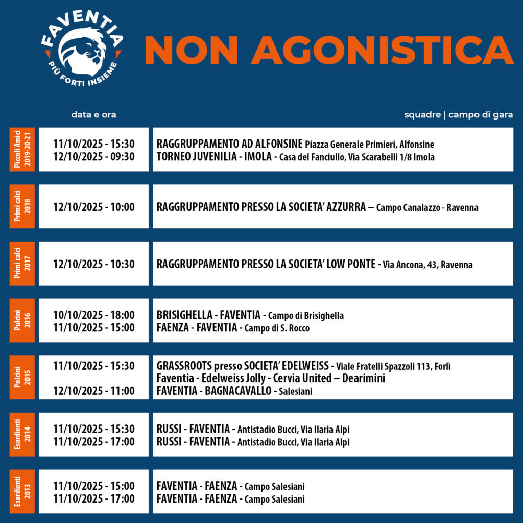 Ecco il programma partite del settore Agonistica e Non Agonistica.