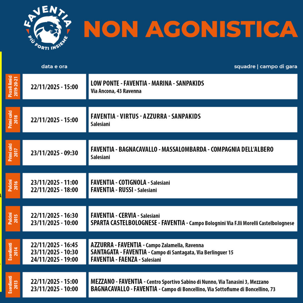 Ecco il programma del settore Agonistica, Non Agonistica e Femminile.