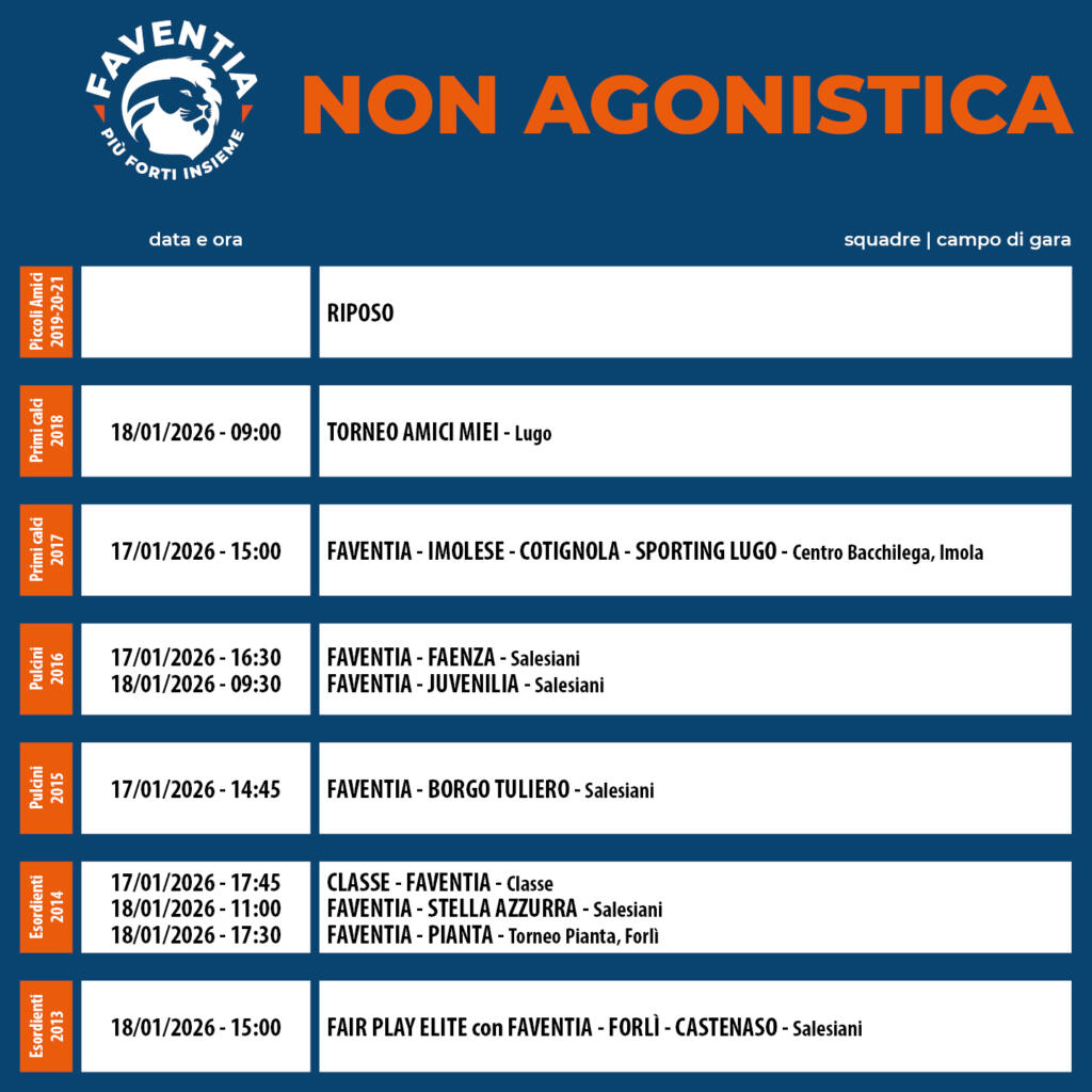 Ecco il programma del settore Agonistica, Non Agonistica e Femminile.
